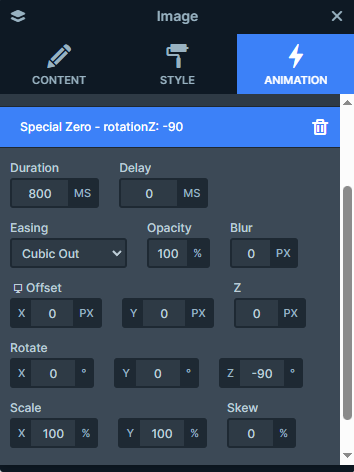 On the third slide, animations are layered a bit more. First, the text slides in from the bottom, and then the images follow. Hovering over the cards makes them rotate just a little, each one in its own direction with events set up. Like before, Special zero helps them snap right back to their original angle when the hover ends.